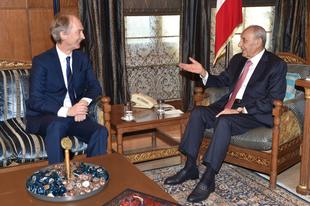 استقبل رئيس مجلس النواب نبيه بري ظهر اليوم في عين التينة موفد الامين العام للامم المتحدة الى سوريا غير بيدرسون، وعرض معه للاوضاع والتطورات في لبنان والمنطقة. وتركّز الحديث حول قضيّة النازحين السوريين.