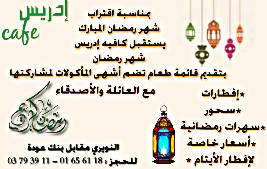بمناسبة اقتراب شهر رمضان المبارك ادريس كافية عالموعد يستقبلكم مع العائلة والاصدقاء