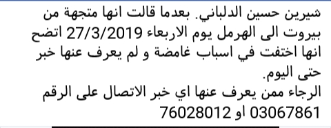 شيرين حسين الدلباني خرجت ولم تعد