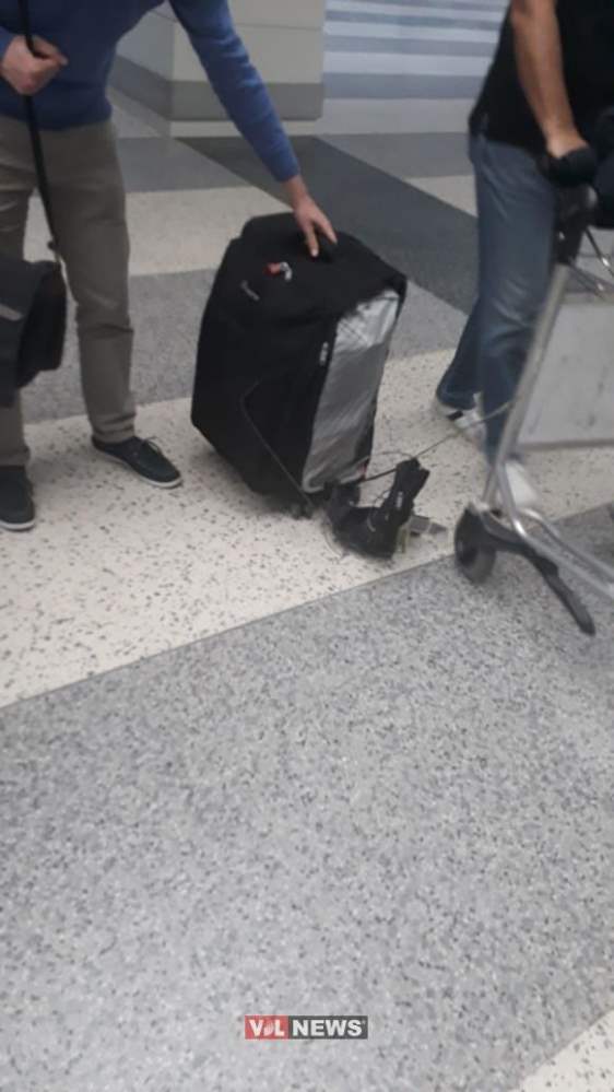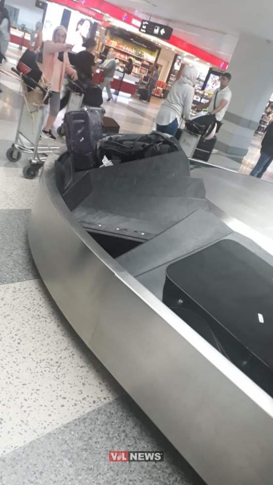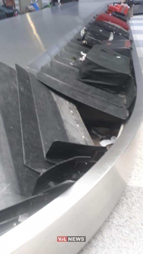 وحمل المسافرون أغراضهم وحقائبهم الممزّقة، قبل أن يتمّ تحويل الحقائب المتبقيّة الى حزام نقل آخر، الى حين اجراء التصليحات اللازمة.