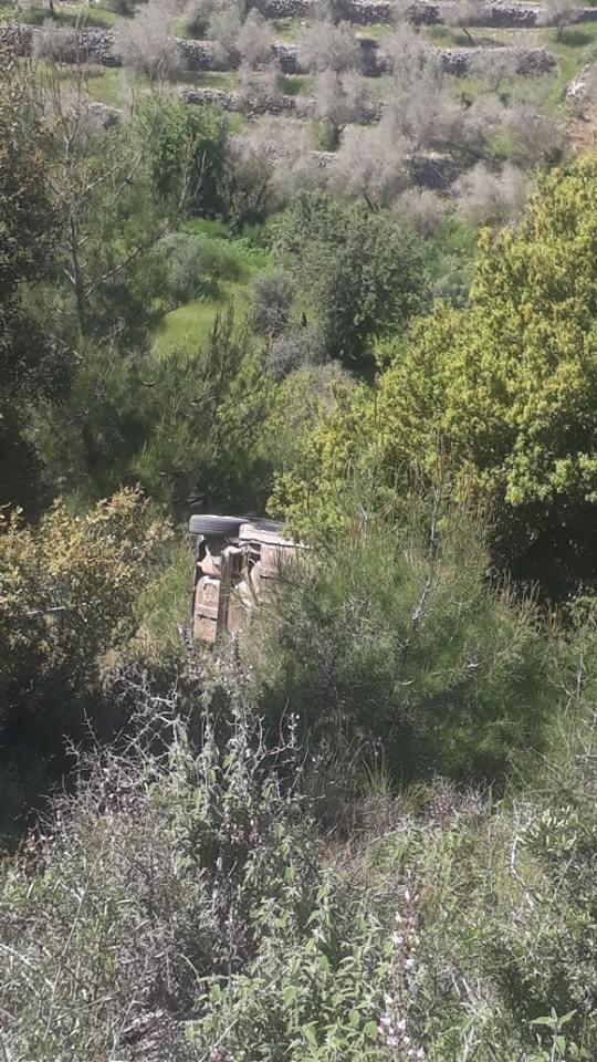 بالصور: انقلاب سيارة داخل ارض عشبية في منطقة بينو – عكار ، واصابة احد المواطنين من آل حمود.