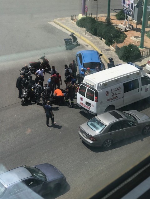 وقع حادث سير، منذ قليل، عند دوار أبي شهلا في منطقة الاونيسكو في بيروت، بين سيارة ودراجة نارية، ما أدى الى إصابة سائق الدراجة.وعلى الفور، انتشر عناصر قوى الامن لإجراء التحقيقات اللازمة، كما أتى الخبير ليعاين الحادث.