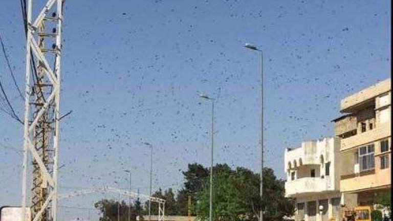 نشر الباحث في أحوال المناخ علي جابر صورة لأسراب من الجراد بدأت تظهر في البقاع مشيراً إلى أنها ستستمر حتى الغد خاصة بعد تحول الرياح الى جنوبية شوقية جافة مع انخفاض نسبة الرطوبة.