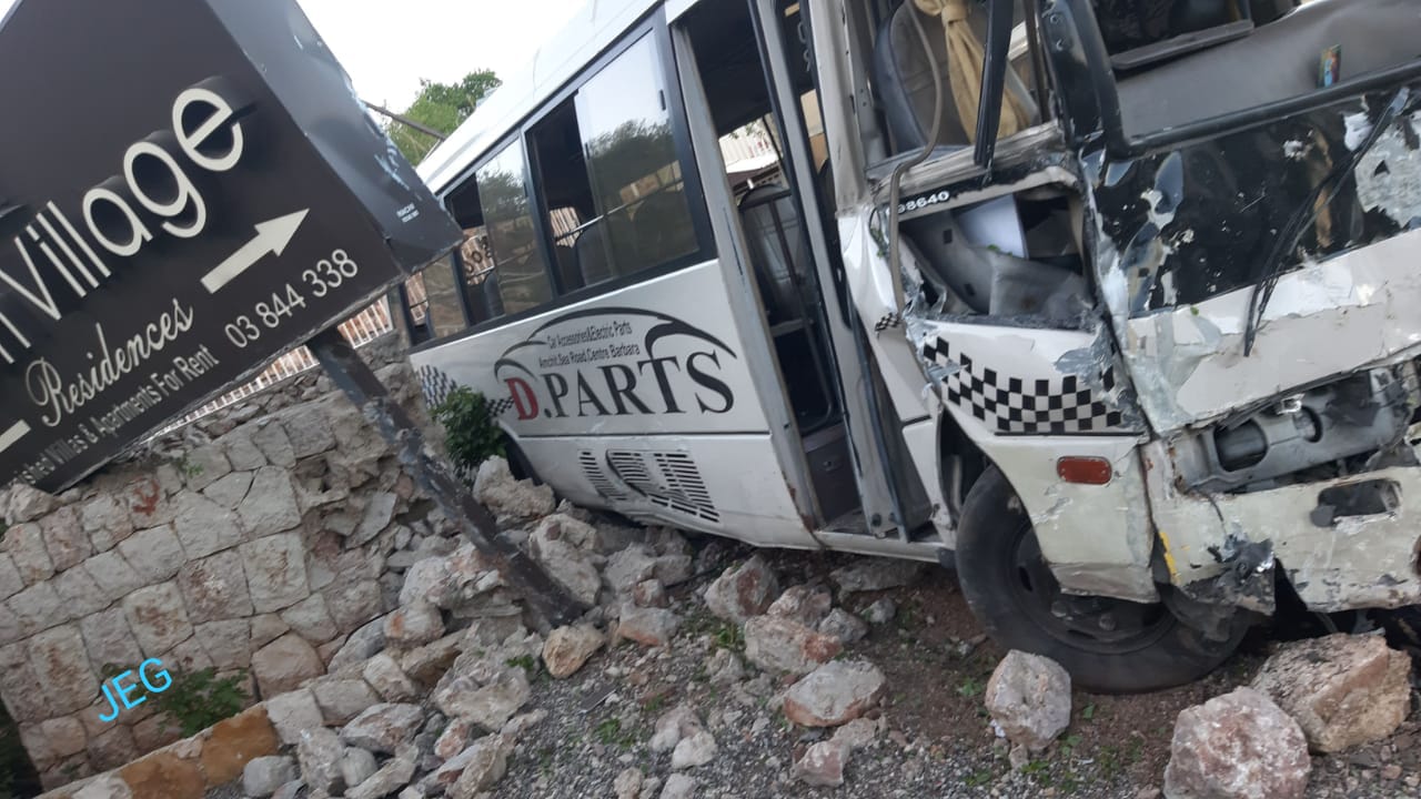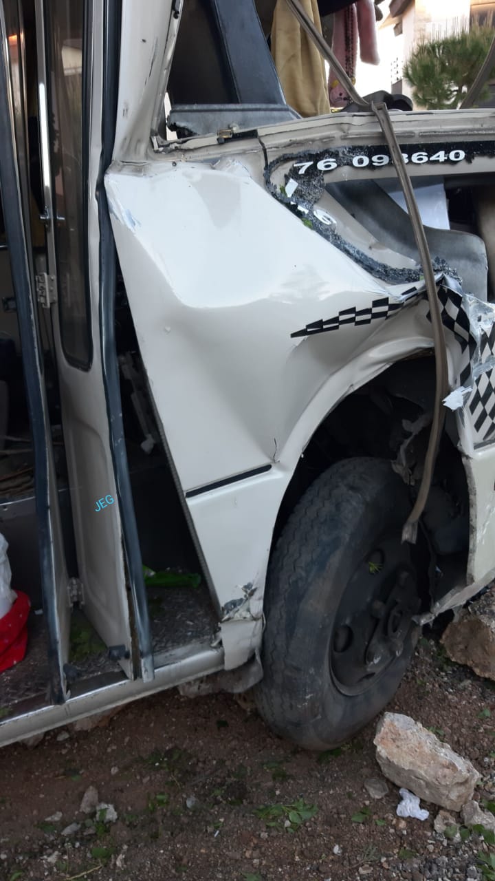بالصور حادث سير اليوم منطقة اهدن اصطدام حافلة للنقل بالحائط وسقوط السائق جريح تم نقله الى المستشفى