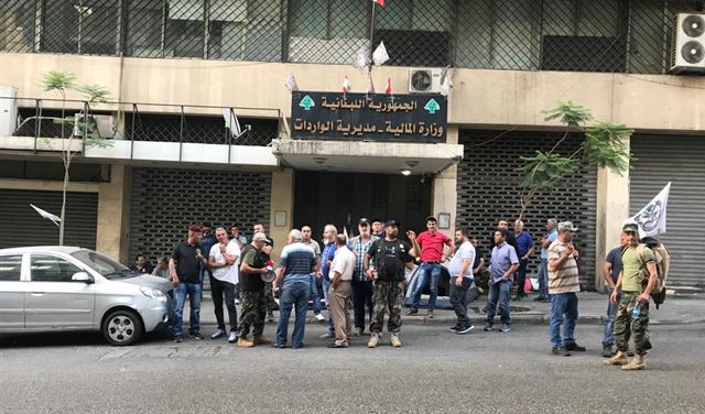 اقفلت مجموعة من العسكريين المتقاعدين صباح اليوم الاربعاء مدخل مبنى الواردات في وزارة المالية في شارع بشارة الخوري – بيروت.
