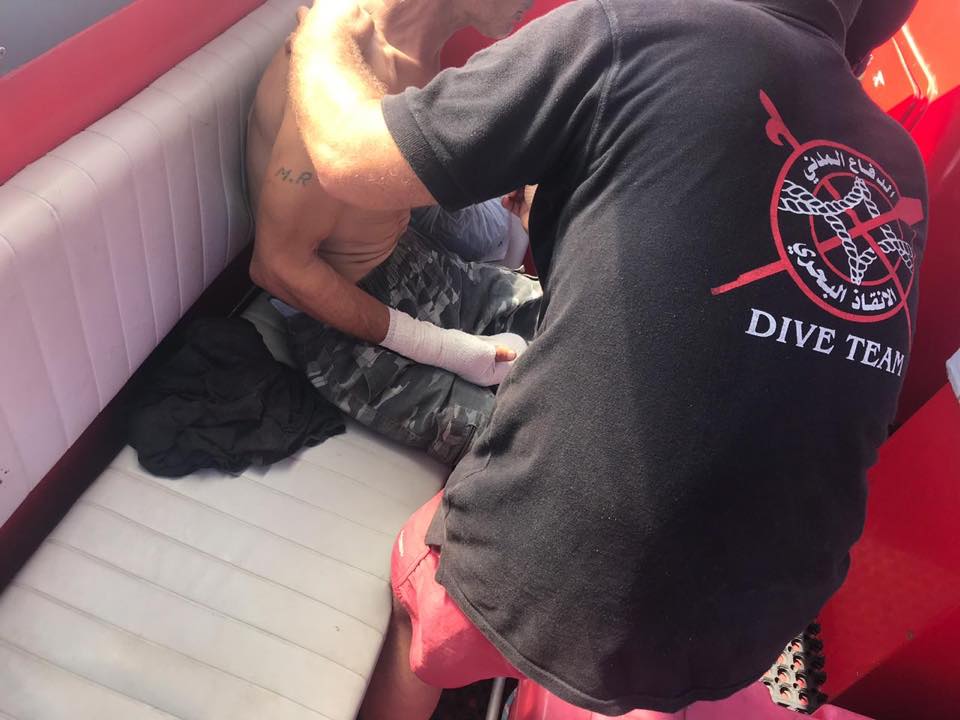 وبعد إيصاله إلى برّ الأمان وتقديم الإسعافات الأولية اللازمة له، تمّ نقله إلى المستشفى من قبل جهات أخرى لتلقّي العلاج اللازم.