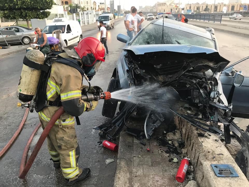عملت عناصر من الدفاع المدني، صباح اليوم الخميس، على إخماد حريق شبّ في سيارة رباعية الدفع إثر حادث سيرٍ وقع على أوتوستراد المطار باتّجاه بيروت، بحسب ما ذكرت المديرية العامّة للدفاع المدني عبر صفحتها على “فيسبوك”.