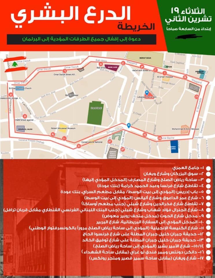 يتم التداول عبر مواقع التواصل الإجتماعي بدعوة للإضراب العام المفتوح غداً الثلاثاء 19 تشرين الثاني، وإغلاق مداخل مجلس النواب كافة تحت تسمية “الدرع البشري” لمنع عقد جلسة مجلس النواب وذلك قبل تأليف الحكومة المستقلة المتخصصة وإعطائها صلاحيات تشريعيّة.