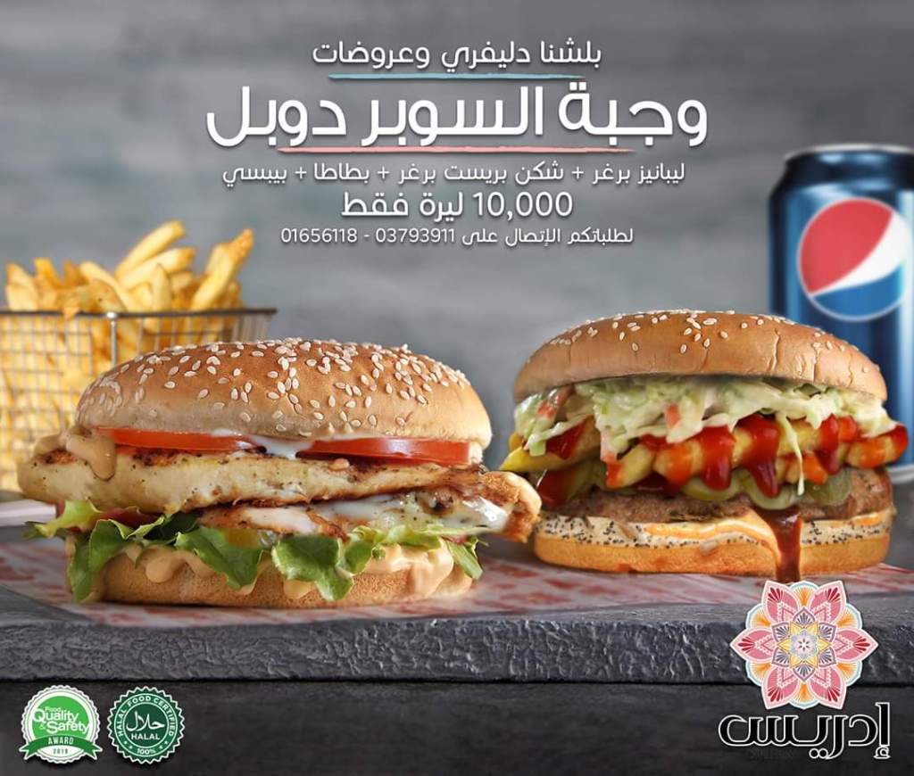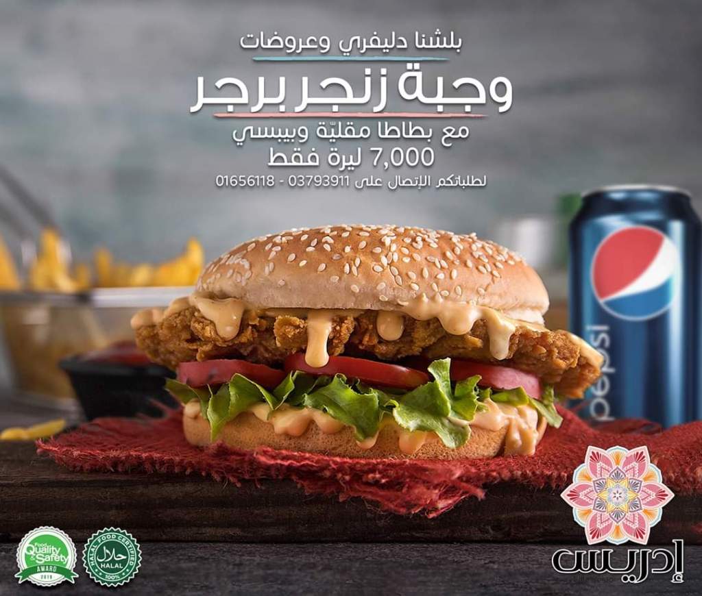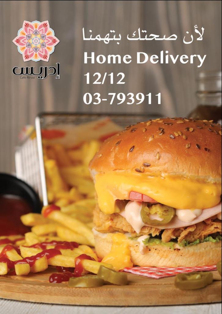 لزبائننّا الأعزاء.. إشتقنالكن وأكيد إنتو إشتقتولنا..😍😍لنضل دايما حدكن وبقربكن، ولتضلّك بالبيت مبسوط وبأمان، ولأوّل مرّةقررنا نعمل “خدمة ديليفيري” لجميع المأكولات، الكريب، والعصائر 🛵🛵🛵وبنوعدكم بعروضات خياليّة نبدأ بها خلال الساعات القادمة..كلّوا واصل لعندكن بتلفون واحد بس وضمن مدينة بيروت الإداريّة.إضغط على الرابط في الأسفل للإطلاع على منيو مطعم وكافيه إدريسhttps://www.facebook.com/cafeidriss/menu/.لطلباتكم الإتصال على الأرقام التالية 📞01656118 – 📞03793911يمكنكم أيضا الحصول على خدمة ال Takeaway بناء على الوضع العامنفتح خدمة الدليفيري من الساعة ١٢ ظهرا وحتى ١٢ مساء.ملاحظة: لحومنا ودجاجنا كلّها من سوبر ماركت الديوان, شرعيّة وطازجة، كما أننا نعقّم كامل المطعم ومرفقاته مرات عديدة خلال اليوم، مع الأخذ بعين الإعتبار ضمان النظافة وإلتزام موظفينا بأعلى معايير التعقيم والنظافة.