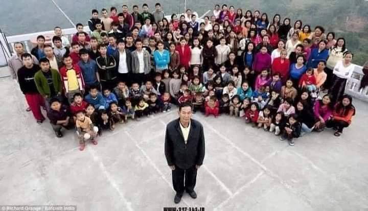 أكبر عائلة في العالم .. عائلة الهندي “زيونا تشانا” ، يمتلك 39 زوجة و94 ابنًا وابنة بالإضافة إلى عدد كبير من الأحفاد .. يعيش في شمال الهند في منزل ضخم يحتوي على 100 حجرة