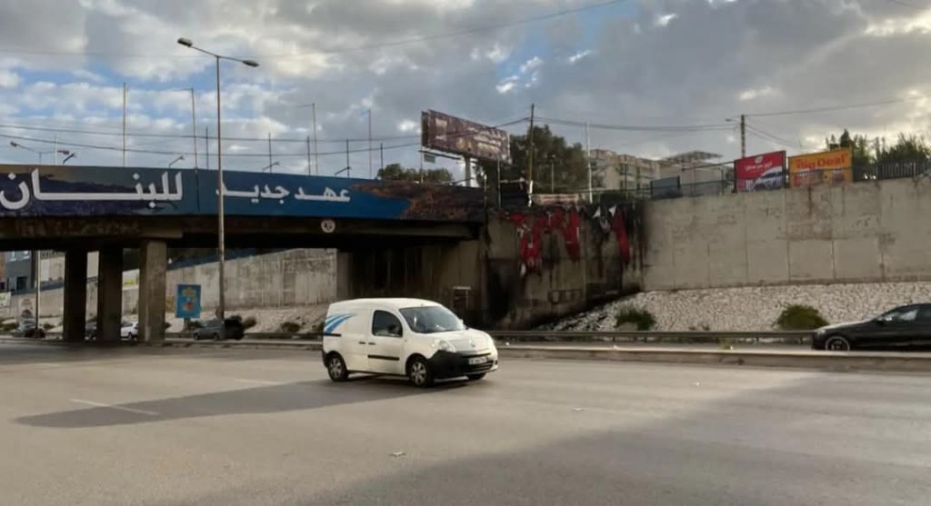 مجهولون أحرقوا لافتات “عهد جديد للبنان” على طريق مطار بيروت