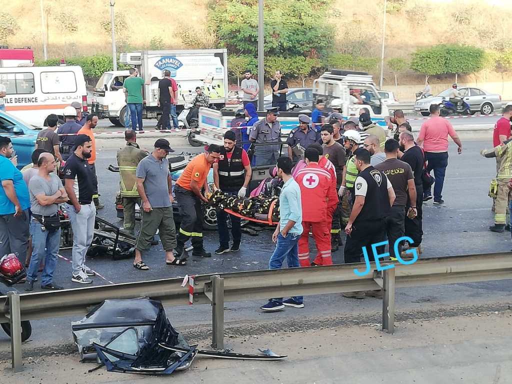 بالصورة والفيديو حادث سير على اتوستراد الاسد باتجاه الكولا ادى الى سقوط امرأة قتيلة وزحمة سير في المحلة