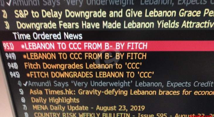 تُخفّض تصنيف لبنان الائتماني من B- إلى CCC