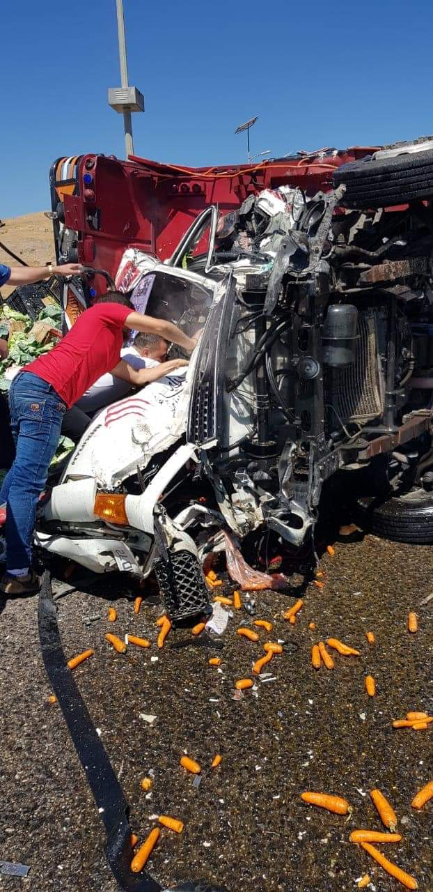 بالصور تصادم بين شاحنتين على طريق عام ضهر البيدر والاضرار مادية وحركة المرور كثيفة في المحلة