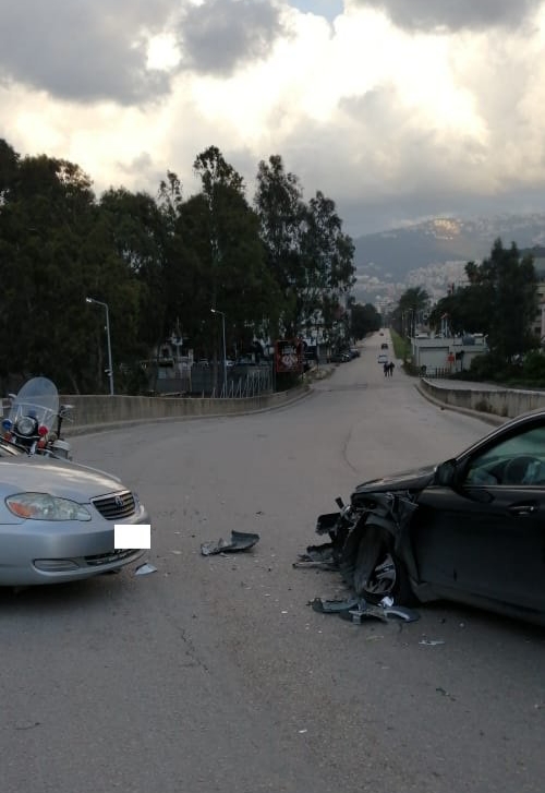 بالصورة ثلاث جرحى نتيجة تصادم بين سيارتين على الطريق البحرية قرب غاليري فانليان ‎الدورة ودراج من مفرزة سير الجديدة في المحلة للمعالجة