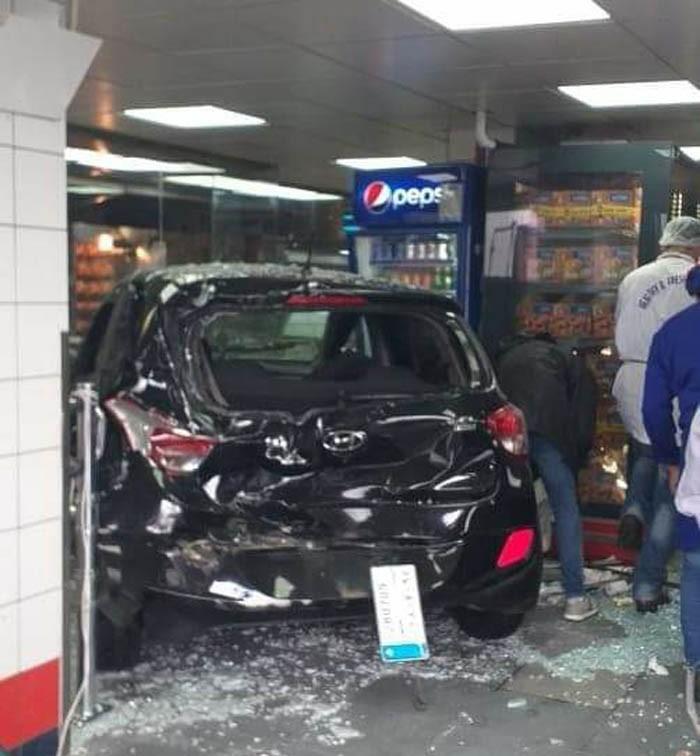بالفيديو حادث اقتحام سيارة محلات الهواتشيكن في انطلياس