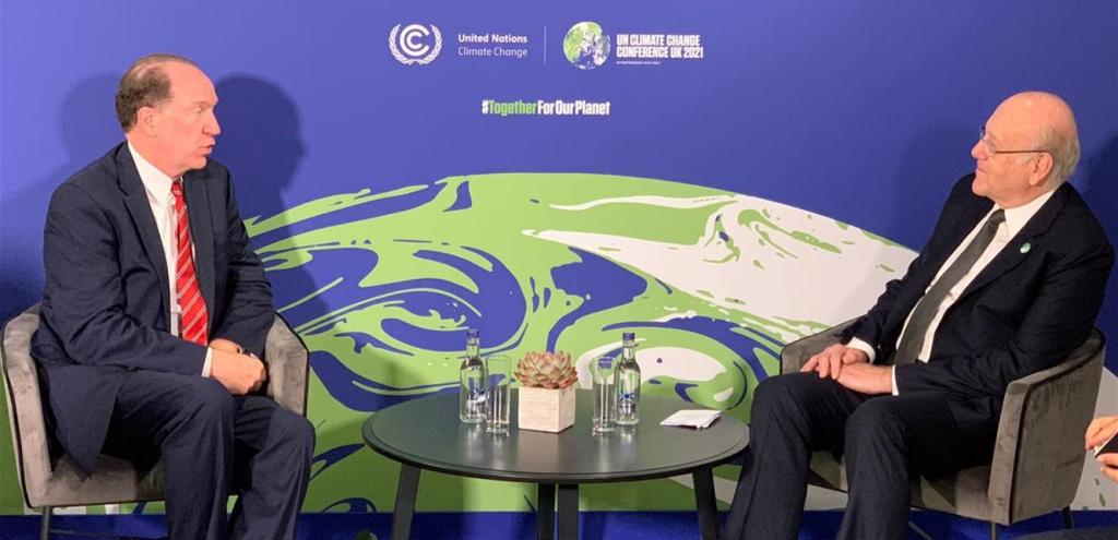 رئيس البنك الدولي يغرّد عن لقائه مع ميقاتي في غلاسكو.. ماذا قال؟